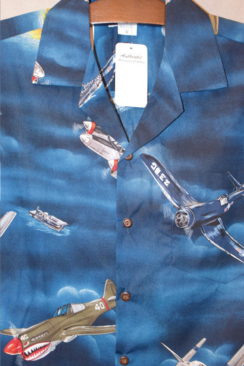 Pacific legend Aloha Shirts Fighter Blue パシフィック レジェンド アロハシャツ 戦闘機 ブルー